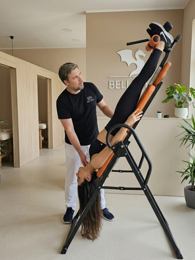 Inverzijsko raztezanje temelji na principu obratnega položaja telesa, kjer se pritisk na medvretenčne ploščice zmanjša, hrbtenica pa se naravno raztegne. Storitev je primerna tako za aktivne posameznike kot za vse, ki se soočajo z napetostjo v hrbtu, dolgotrajnim sedenjem ali utrujenostjo.